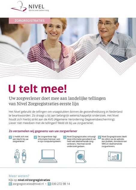 Als huisartsenpraktijk doen wij mee aan landelijke tellingen van Nivel Zorgregistraties Eerste Lijn. Wij zijn hierbij een van de landelijke huisartsen peilstations. Nivel krijgt gecodeerde informatie via ons computersysteem. Met deze informatie wordt onderzoek gedaan. Nivel Zorgregistraties publiceert de cijfers op hun website, voor publiek, voor het ministerie van VWS en voor deelnemende zorgverleners. Nivel weet niet wie u bent of wat u heeft besproken. Uw persoonsgegevens zijn en blijven veilig. We houden ons strikt aan de AVG (Algemene Verordening Gegevensbescherming). Hier (nivel.nl/zorgregistraties) kunt u meer informatie vinden. Wordt u toch liever niet meegeteld? Meld dit bij ons, dan wordt ervoor gezorgd dat uw informatie niet wordt meegenomen in de cijfers.